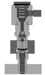 在高壓天然氣管輸系統中,大多數內置止回閥無法有效防止閥門小泄漏的發生。可以向閥門密封系統重新注入少量的清洗液(或流動性好的潤滑脂),浸泡一段時間后就可以有效防止這類泄漏的發生。閥門注脂嘴注入清洗液后,小球和彈簧四周固化的污物在清洗液的浸泡下,將會很快瓦解或者變軟,使止回球和彈簧得到復位,可以有效防止泄漏。如注脂嘴泄漏量大,則會導致注脂 操作不易實施。因此在注入清洗液前,需要安裝泄漏自鎖適配器(如圖5)。