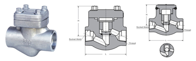 H61H、H61Y 型 800(Lb) 承插焊鍛鋼止回閥有三種體蓋連接設計形式。一種是螺栓式閥蓋:按這種設計形式設計的閥門,其閥體與閥蓋用螺栓螺母連接,纏繞式墊片(316夾柔性石墨制造)密封??蛻粲刑厥庖髸r也可采用金屬環連接。第二種設計形式是焊接式閥蓋,按這種設計形式的閥門,其閥體與閥蓋用螺紋連接,全焊密封??蛻粲刑厥庖髸r也可采用透焊連接。第三種是壓力自緊式閥蓋,按這種設計形式設計的閥門,其閥體與閥蓋用螺紋連接,內壓自密環密封。